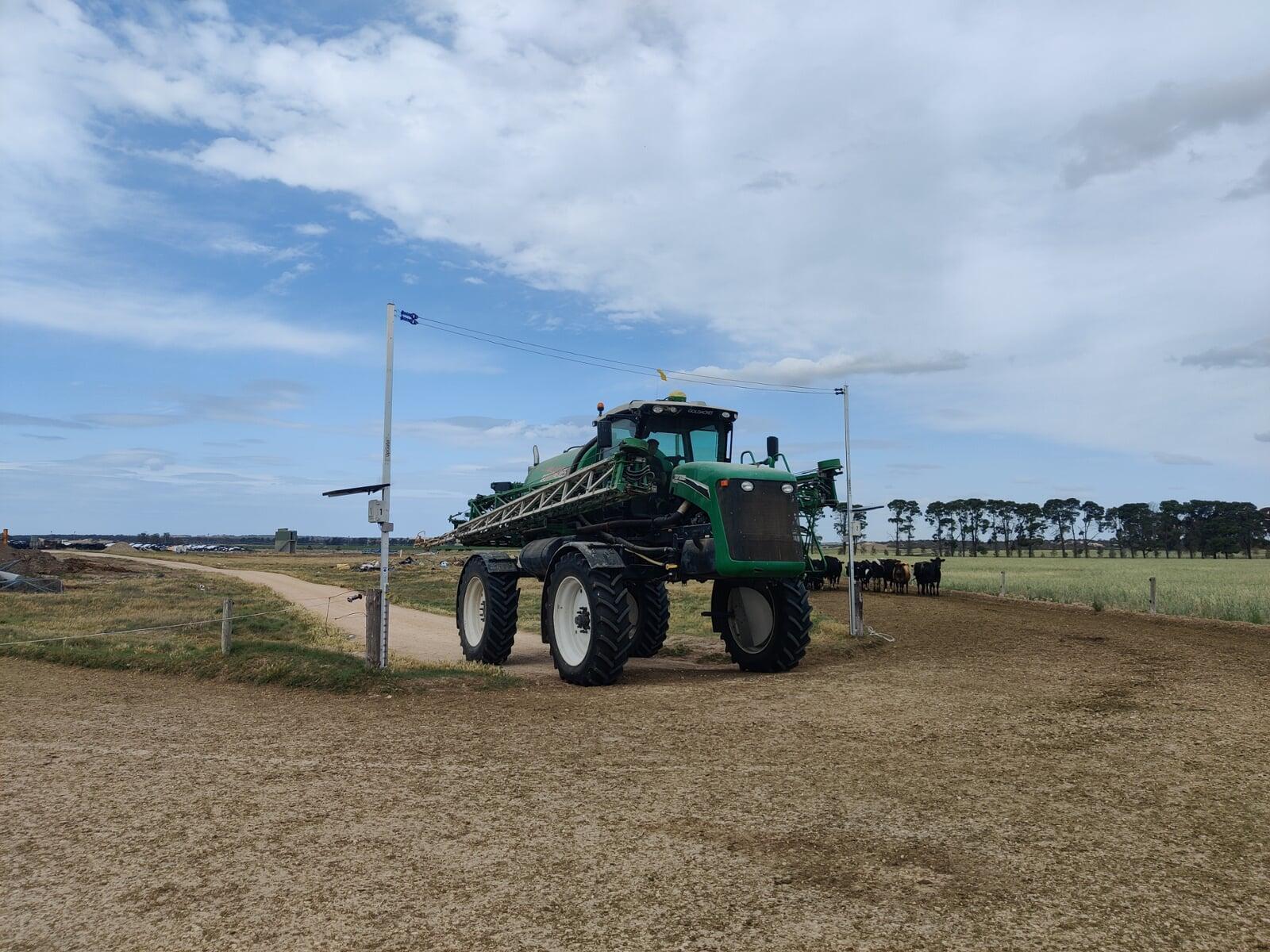The UpGate™ Large has approximately 4.3 to 4.5m clearance underneath. It is the same as our UpGate™ standard, only taller to accomodate taller vehicles. Most vehicles will fit underneath. Check out the images of a self propelled sprayer at 4.3m tall passing underneath! The bungy cords are not electrified in the open position, so small whip antennas gently touching the bungees on the way through is fine.